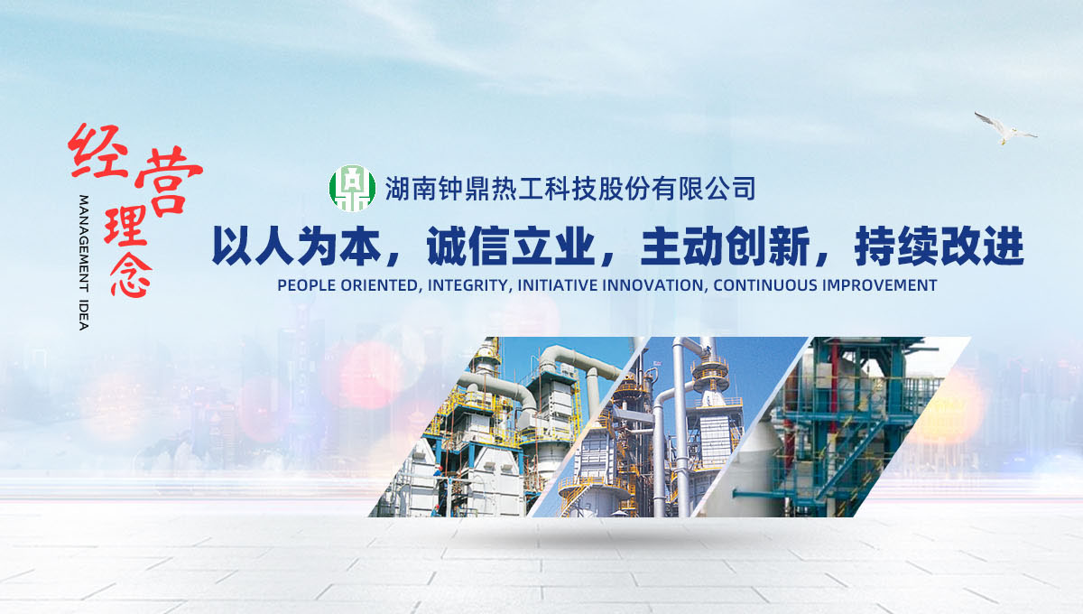 鐘鼎熱工以“節(jié)能環(huán)保 社會責任”為己任,本著嚴謹務實、創(chuàng)新奮進,以客戶為先的服務理念,竭誠為石化、有色、鋼鐵、建材等行業提供更優(yōu)良的節(jié)能環(huán)保新技術新裝備,為“碧水藍天”的環(huán)保型社會貢獻企業的力量!